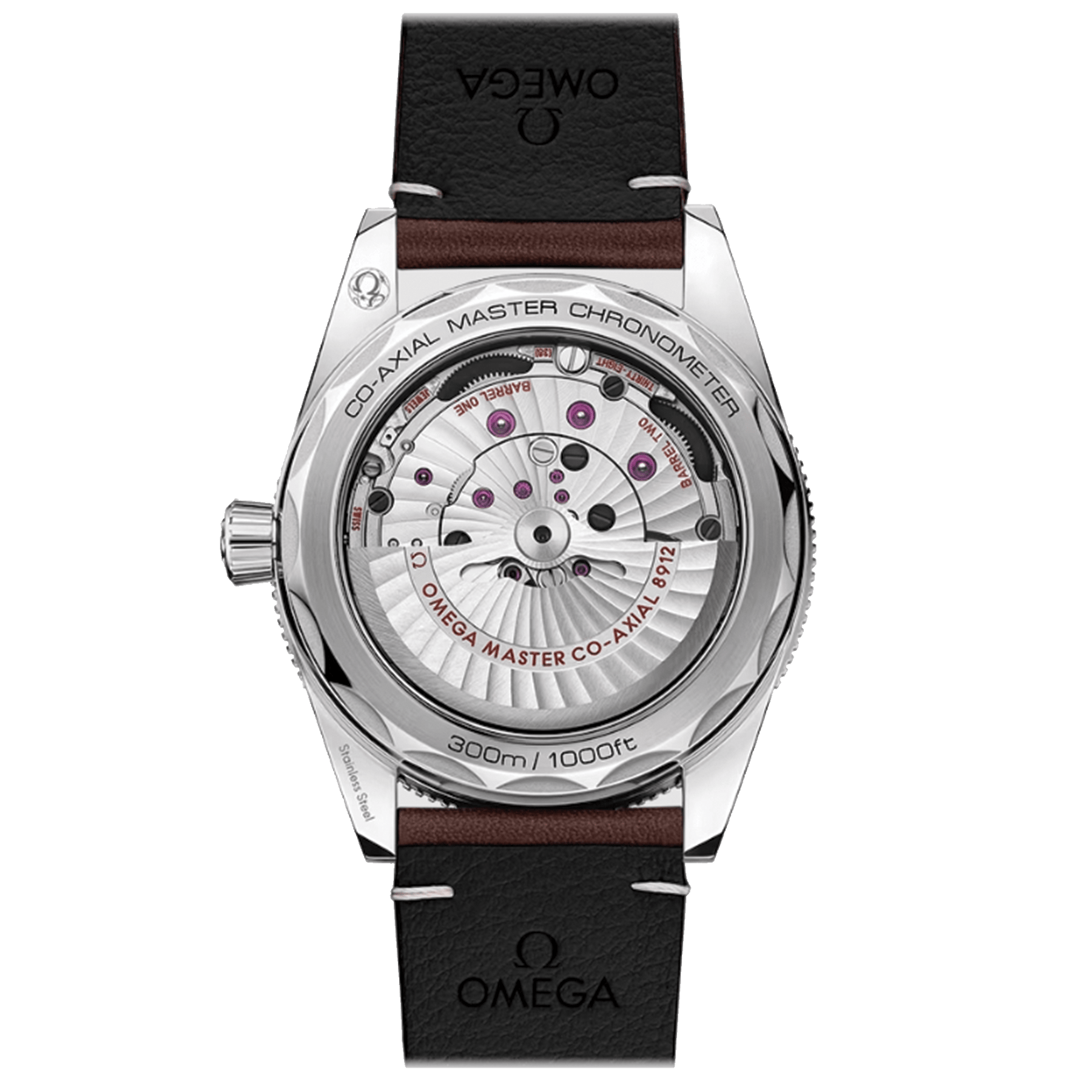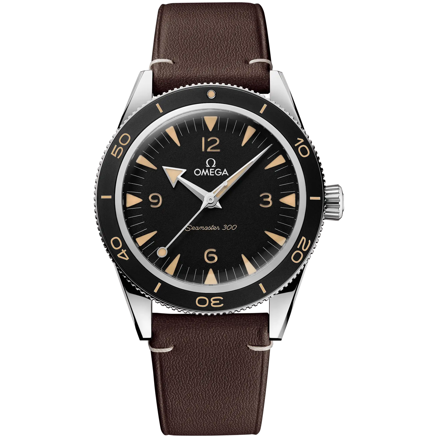 This Omega Seamaster - CO‑AXIAL MASTER CHRONOMETER watch has a 41mm stainless steel case with black oxalic anodized aluminium bezel. This model also features an automatic movement, Leather strap, sapphire crystal and a Black dial with Super-luminova. It has a water resistance of 300m